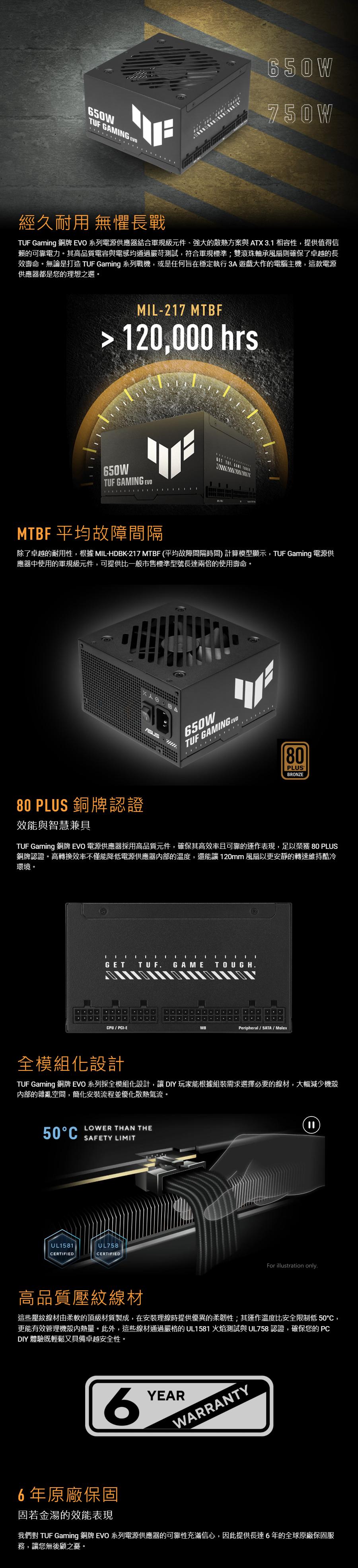 華碩 TUF GAMING 750B EVO 750W 雙8/銅牌/全模組/ATX3.1/防潮塗層/6年保